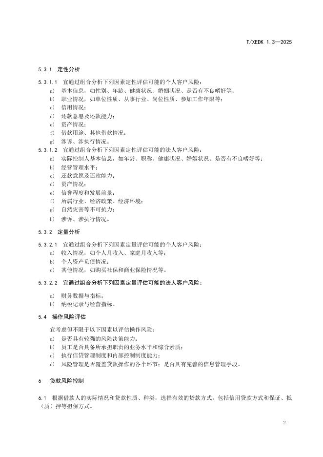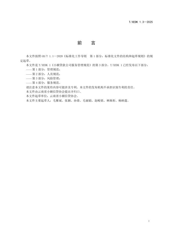 T/XEDK 1.3-2025 小额贷款公司服务管理规范 第3部分:风险管理