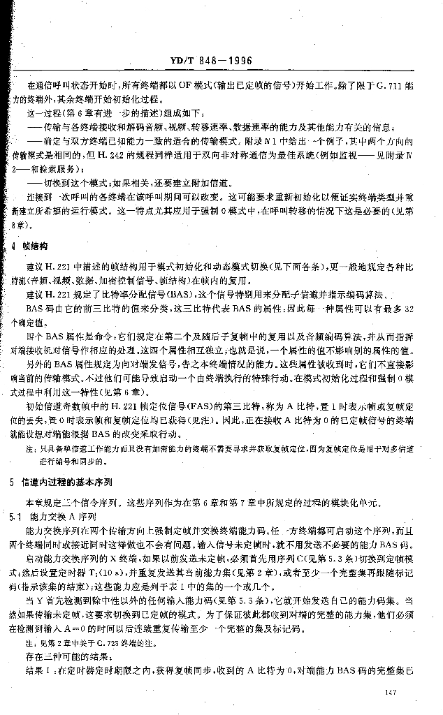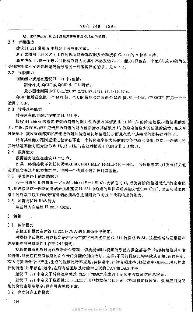 YD/T 848-1996 使用 2Mbit/s 及 2Mbit/s 以下的数字信道建立视听终端间通信的系统