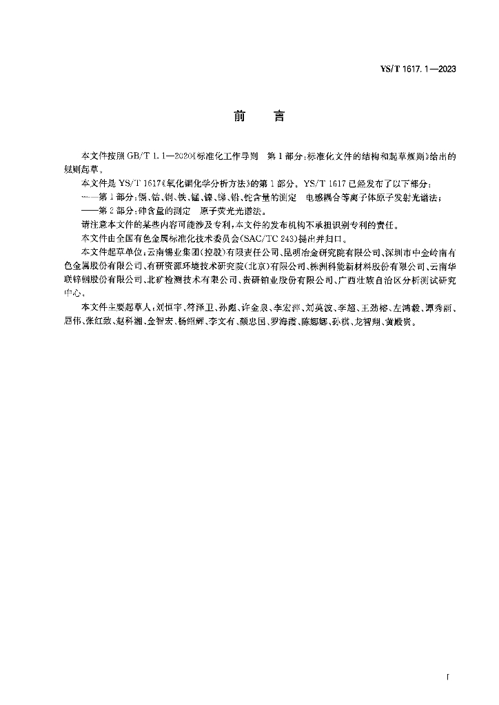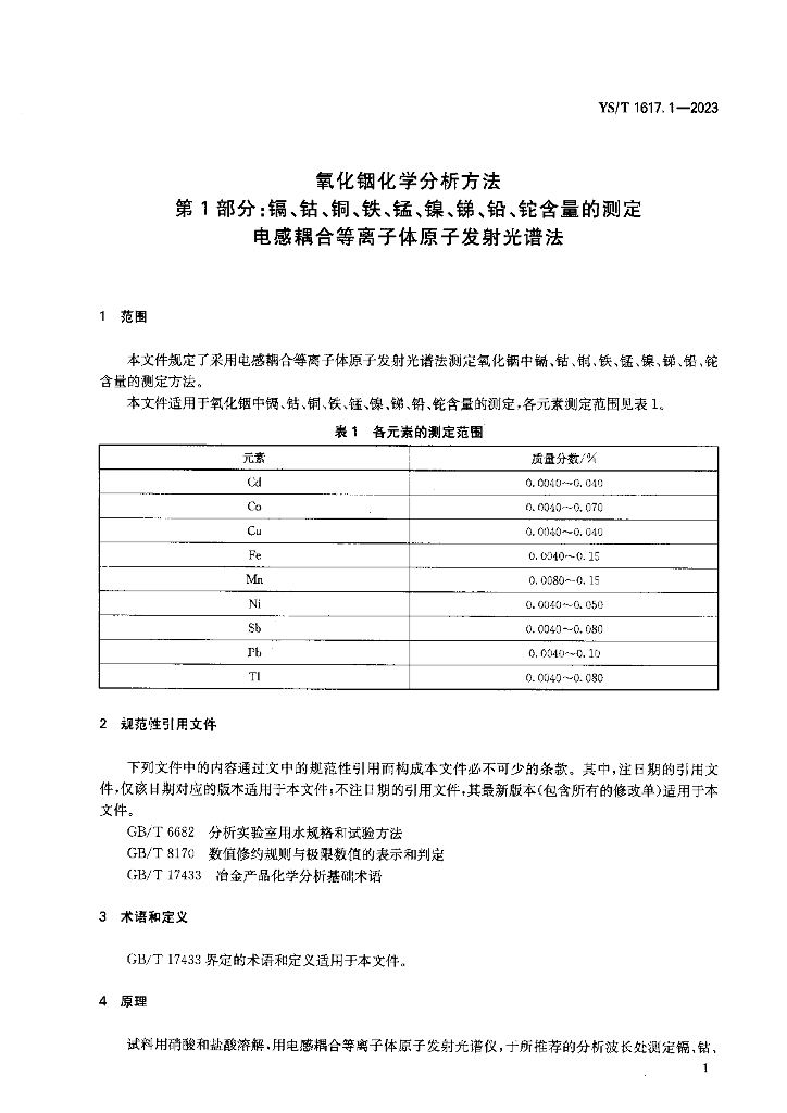 YS/T 1617.1-2023 氧化铟化学分析方法 第1部分:镉、钴、铜、铁、锰、镍、锑、铅、铊含量的测定 电感耦合等离子体原子发射光谱法