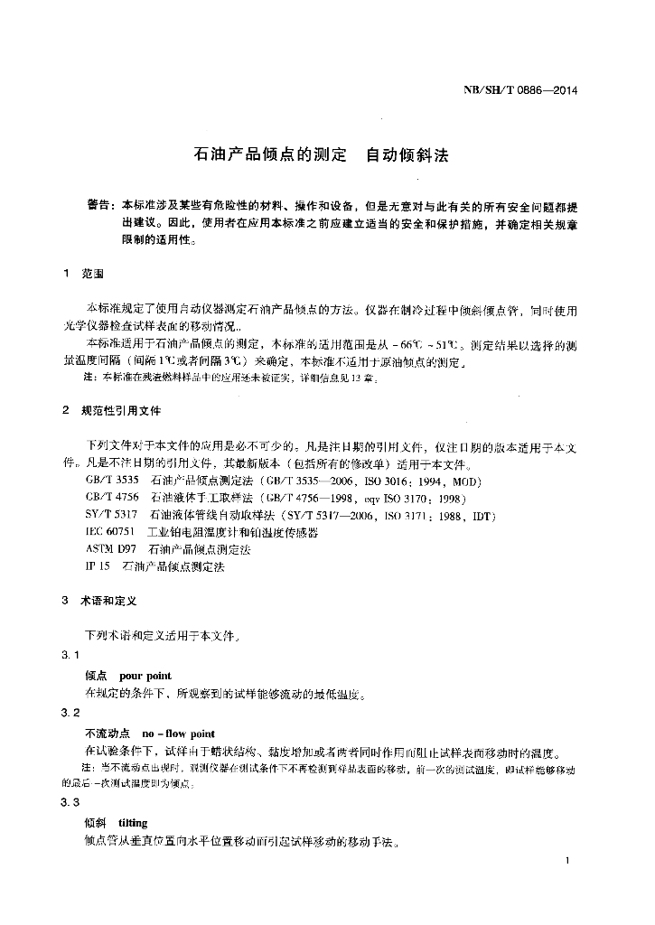 NB/SH/T 0886-2014 石油产品倾点的测定 自动倾斜法