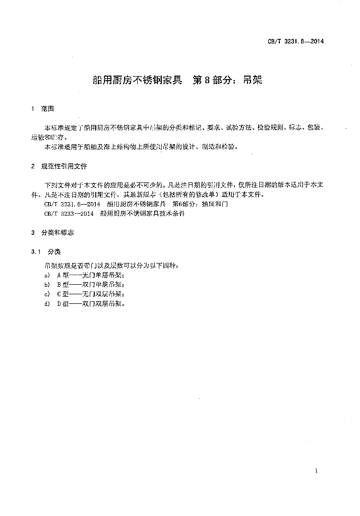 CB/T 3231.8-2014 船用厨房不锈钢家具 第8部分:吊架