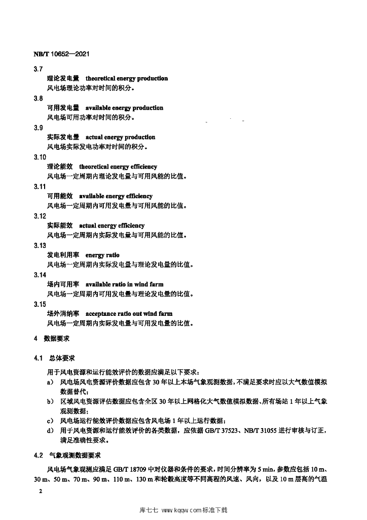 NB/T 10652-2021 风电资源与运行能效评价规范