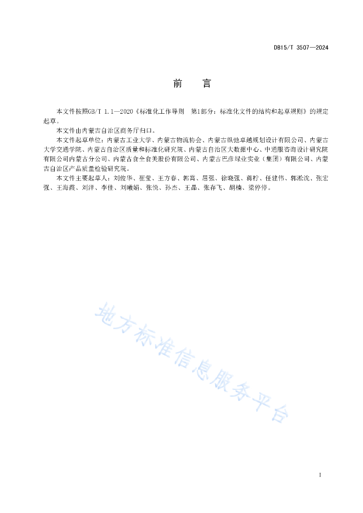 内蒙古工业大学、内蒙古物流协会、内蒙古纵弛卓越规划设计有限公司、内蒙古大学交通学院、内蒙古自治区质量和标准化研究院、内蒙古自治区大数据中心、中通服咨询设计研究院有限公司内蒙古分公司、内蒙古食全食美股份有限公司、内蒙古巴彦绿业实业(集团)有限公司、内蒙古自治区产品质量检验研究院