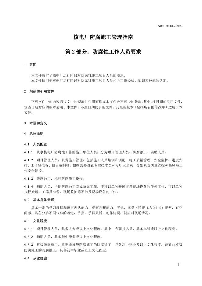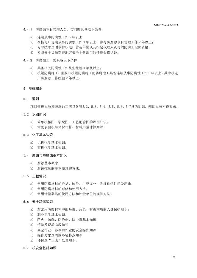 NB/T 20684.2-2023 核电厂防腐施工管理规定 第2部分:防腐蚀工作人员要求