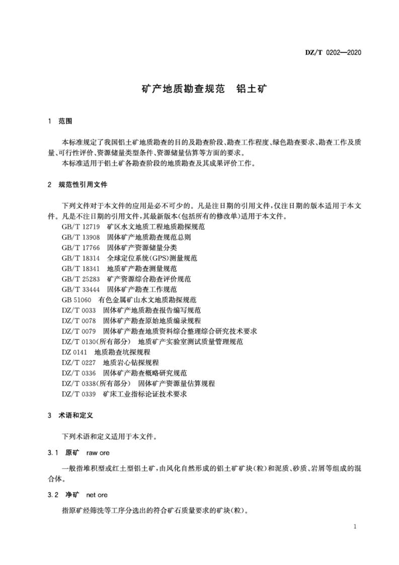 DZ/T 0202-2020 矿产地质勘查规范 铝土矿