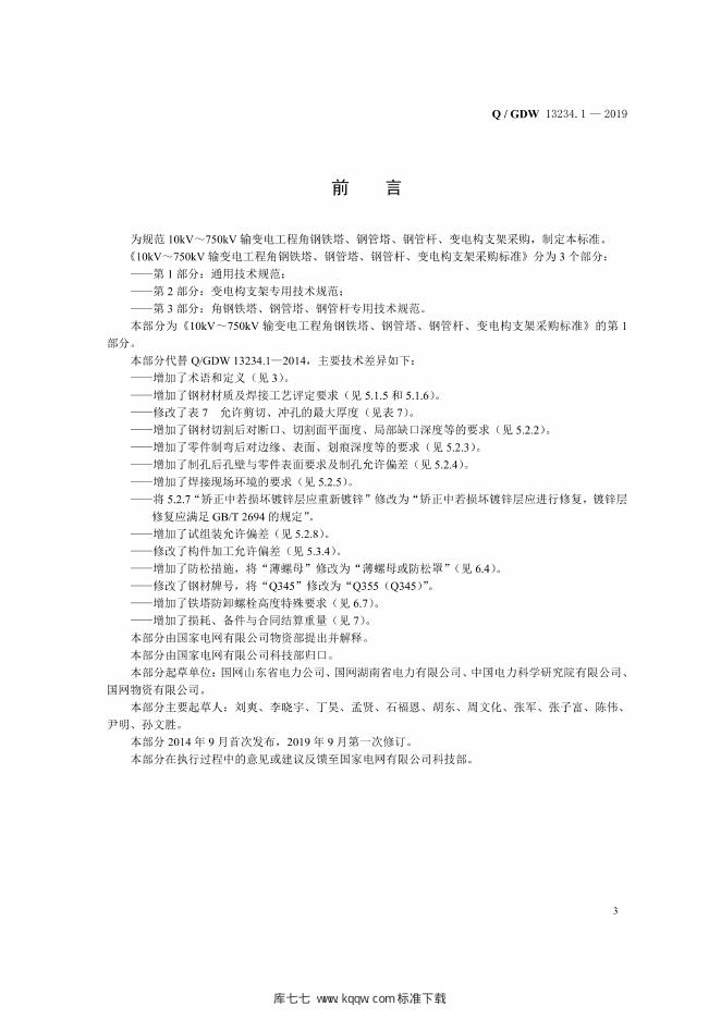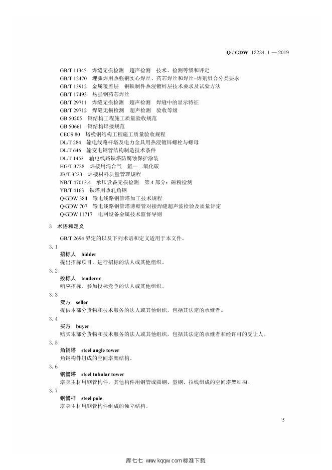 Q/GDW 13234.1-2019 10kV~750kV输变电工程角钢铁塔、钢管塔、钢管杆、变电构支架采购标准 第1部分:通用技术规范