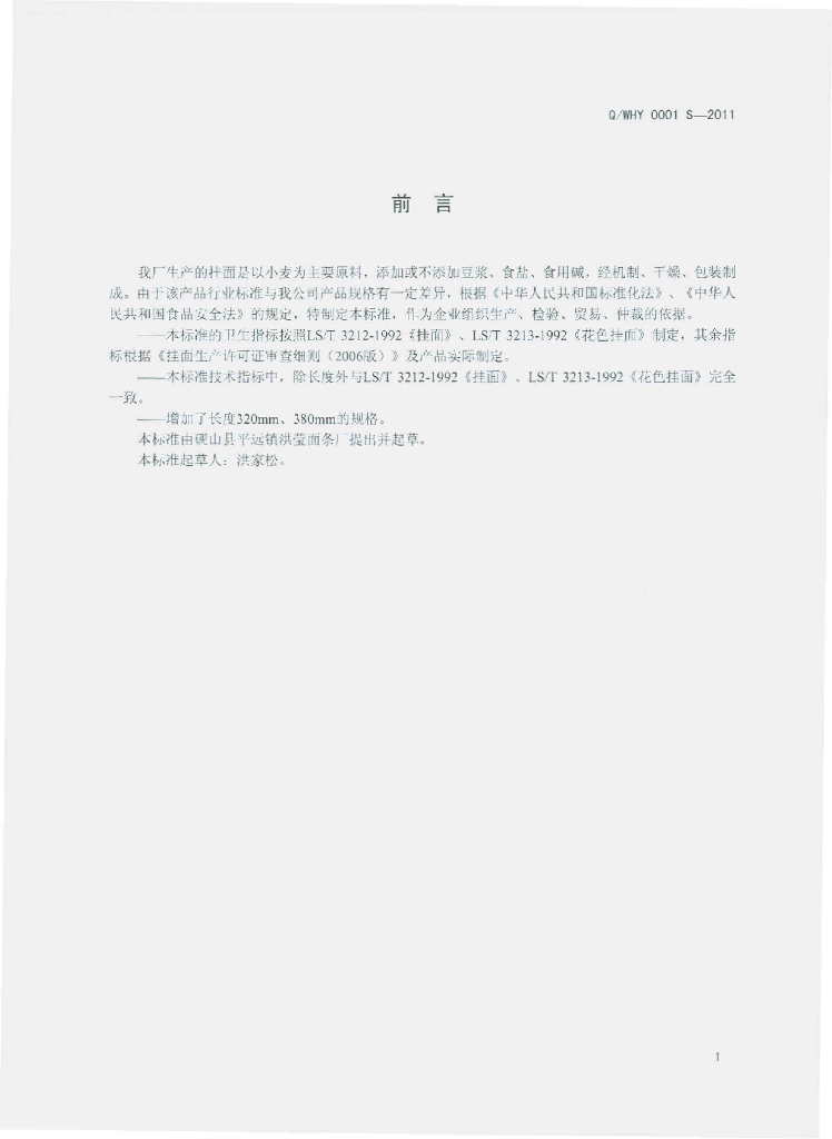 Q/WHY 0001S-2011 挂面(花色面)