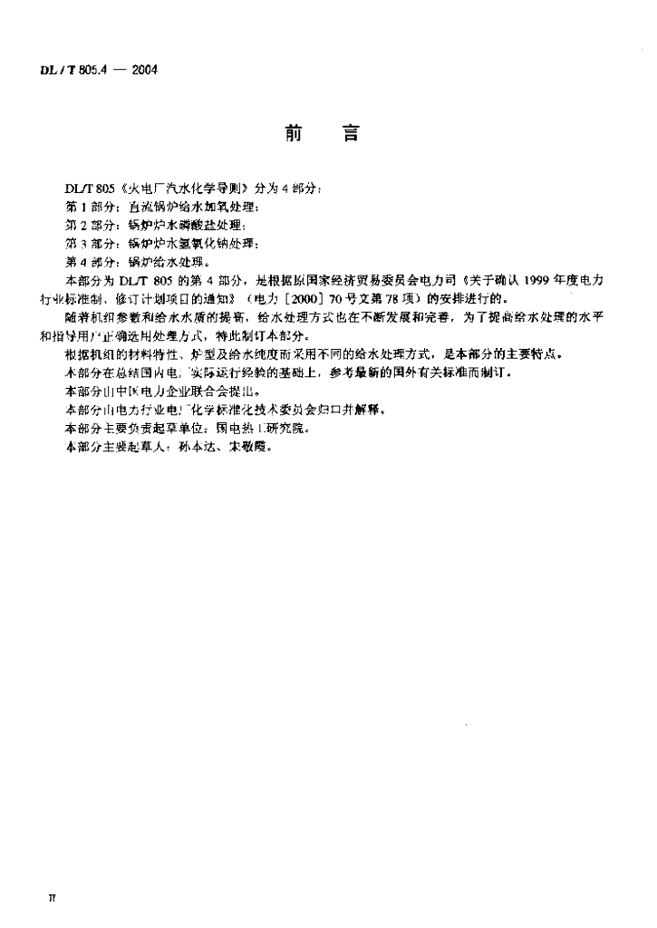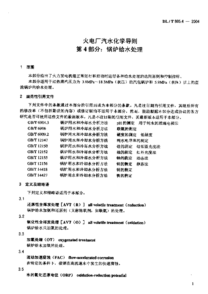 DL/T 805.4-2004 火电厂汽水化学导则 第4部分:锅炉给水处理