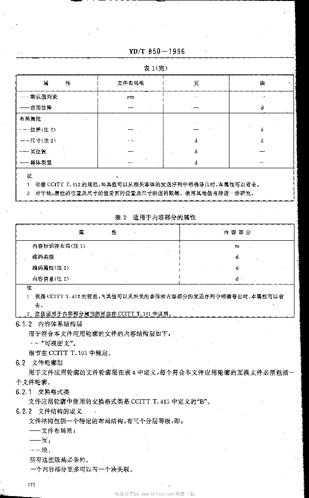 YD/T 850-1996 可视图文互通的文件应用轮廓