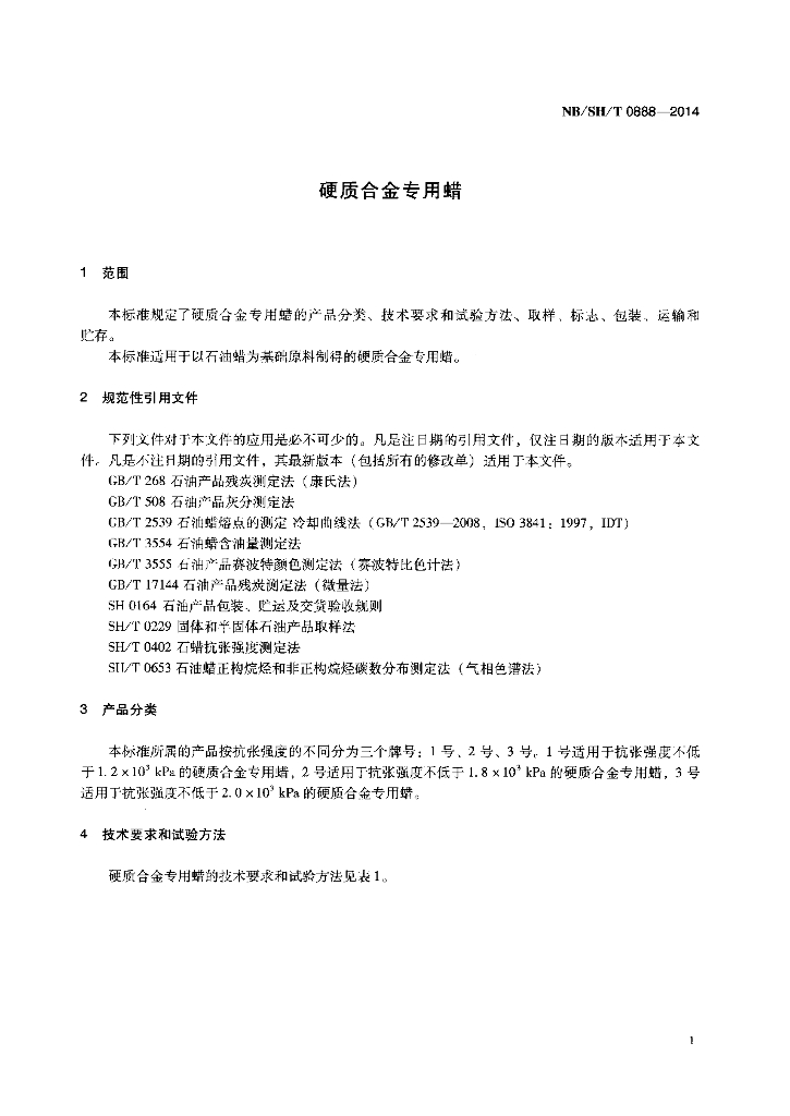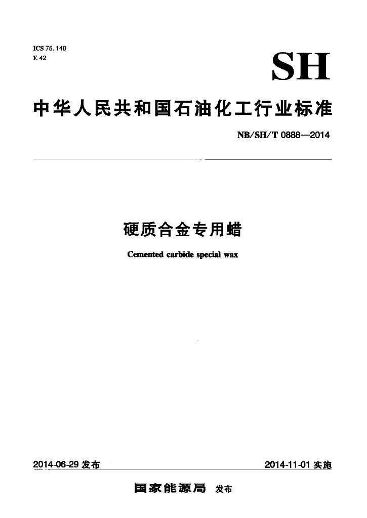 NB/SH/T 0888-2014 硬质合金专用蜡