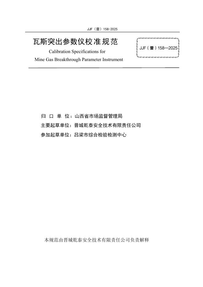JJF(晋)158-2025 瓦斯突出参数仪校准规范