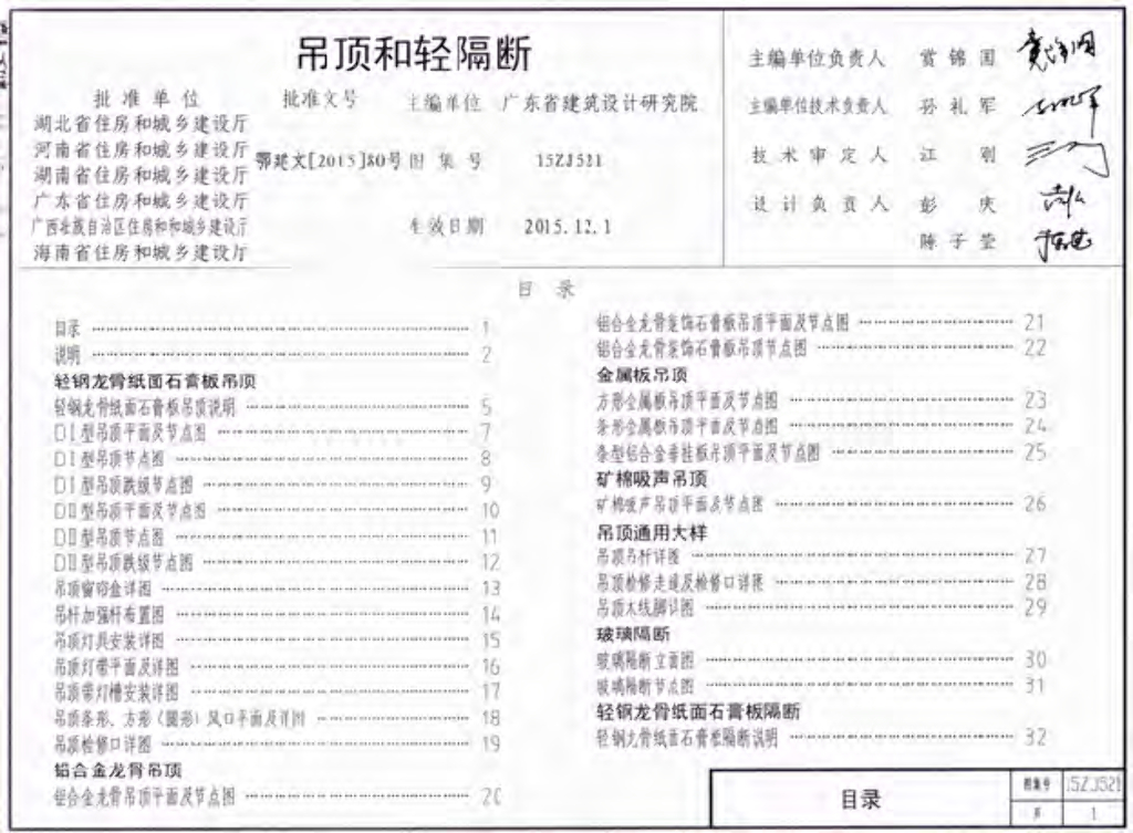 15ZJ521 吊顶和轻隔断(中南标图集)