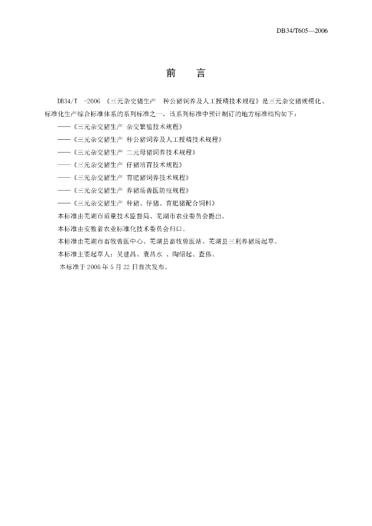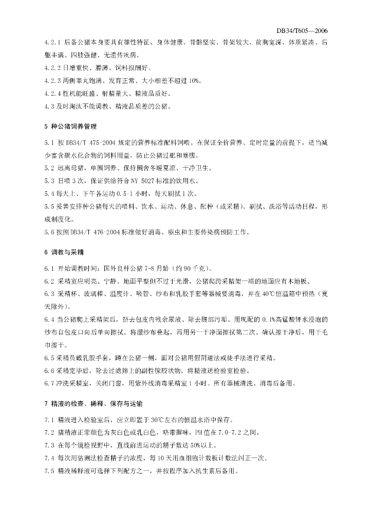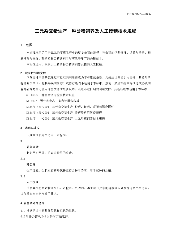 DB34/T 605-2006 三元杂交猪生产种公猪饲养及人工授精技术规程