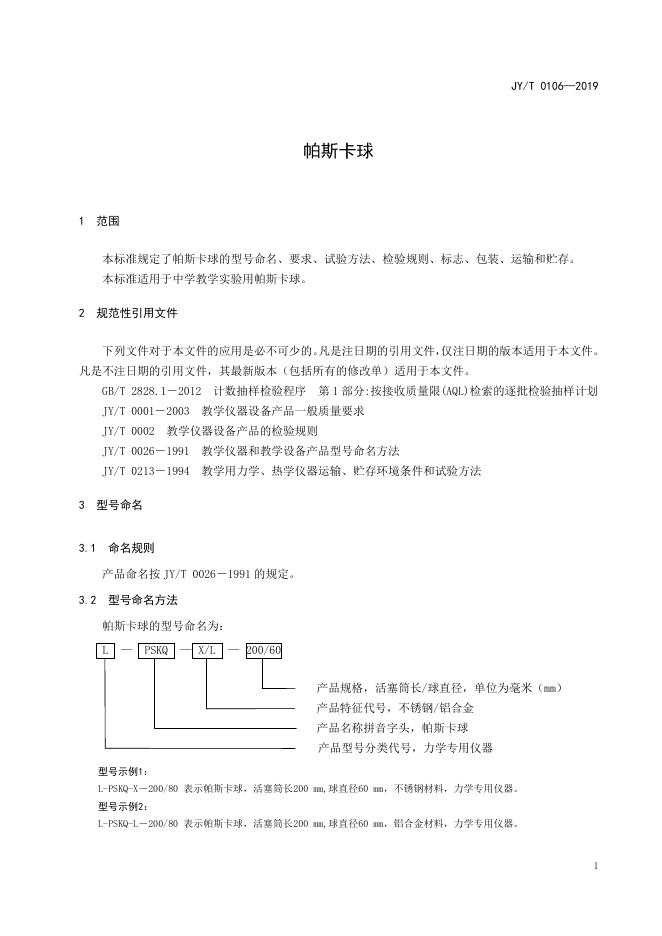 JY/T 0106-2019 帕斯卡球