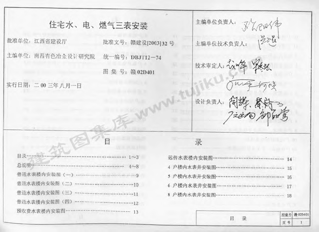 赣02D401 住宅水、电、燃气三表安装图集