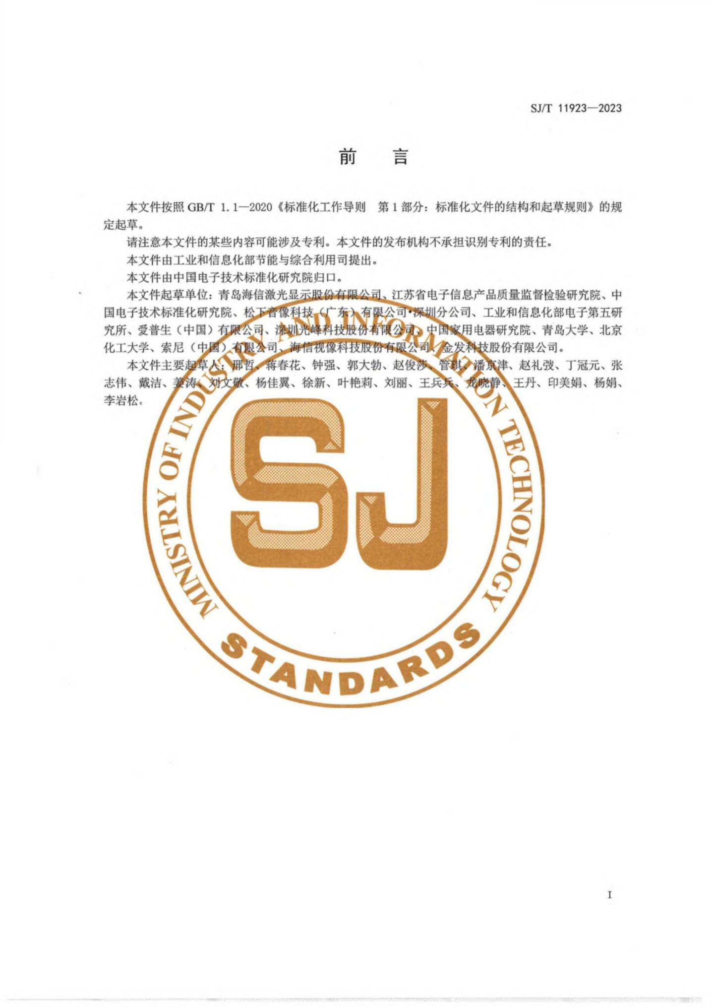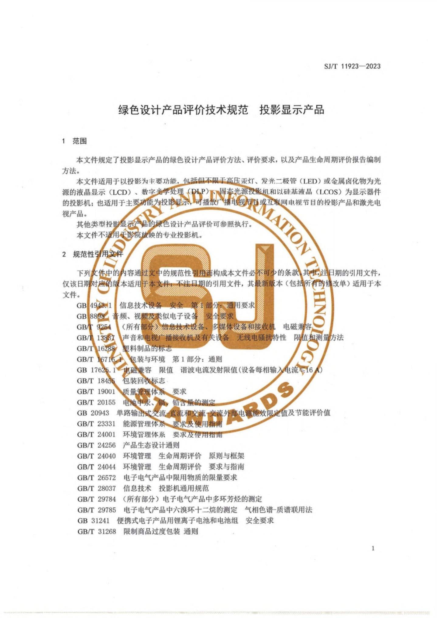 SJ/T 11923-2023 绿色设计产品评价技术规范 投影显示产品