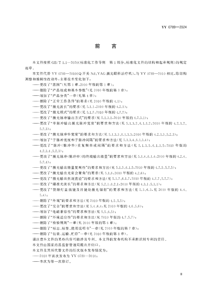 YY 0789-2024 激光治疗设备 调Q眼科激光治疗机