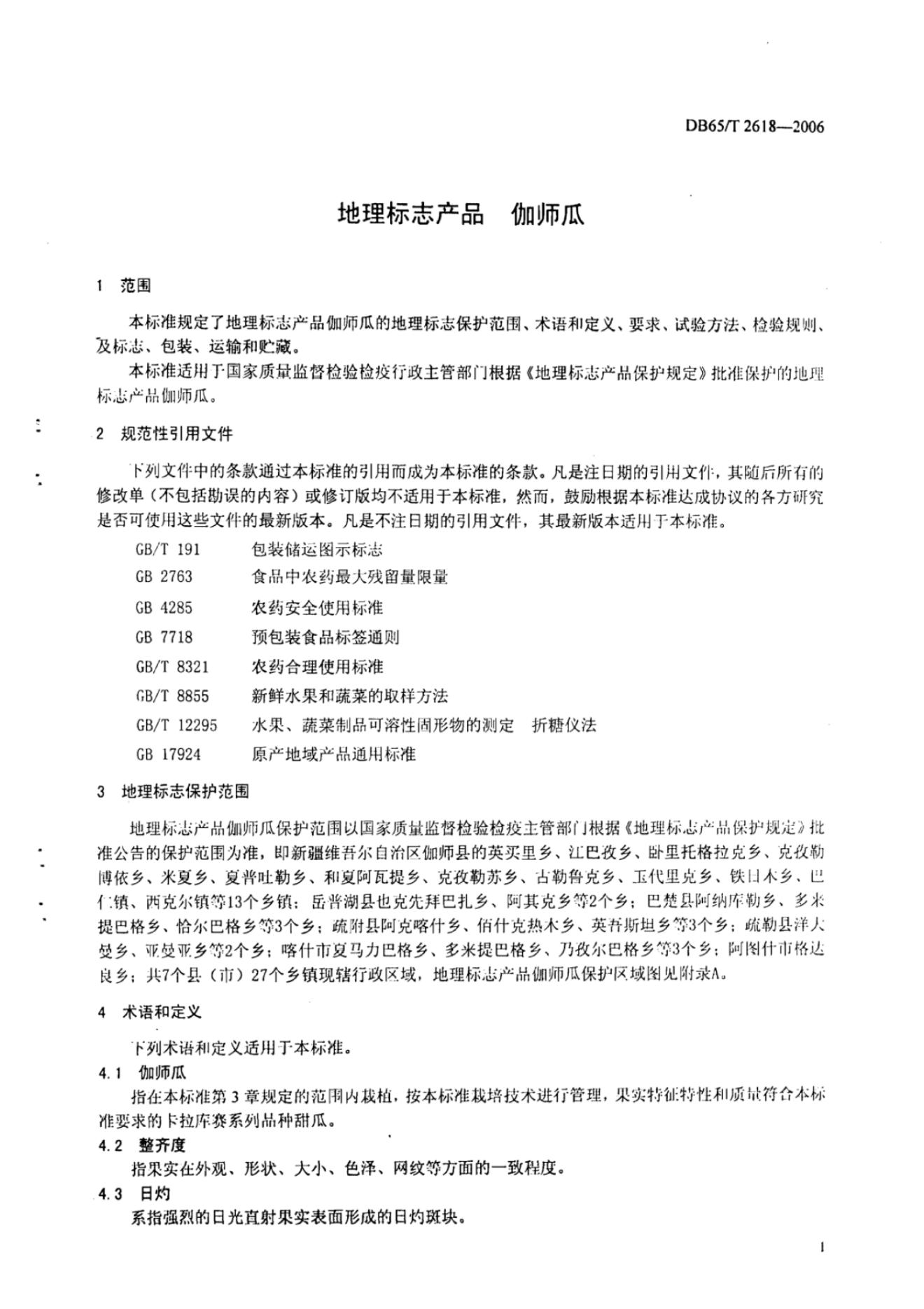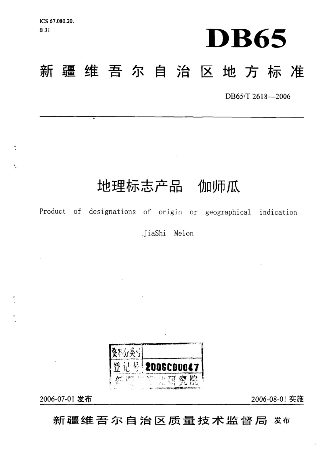 DB65/T 2618-2006 地理标志产品 伽师瓜