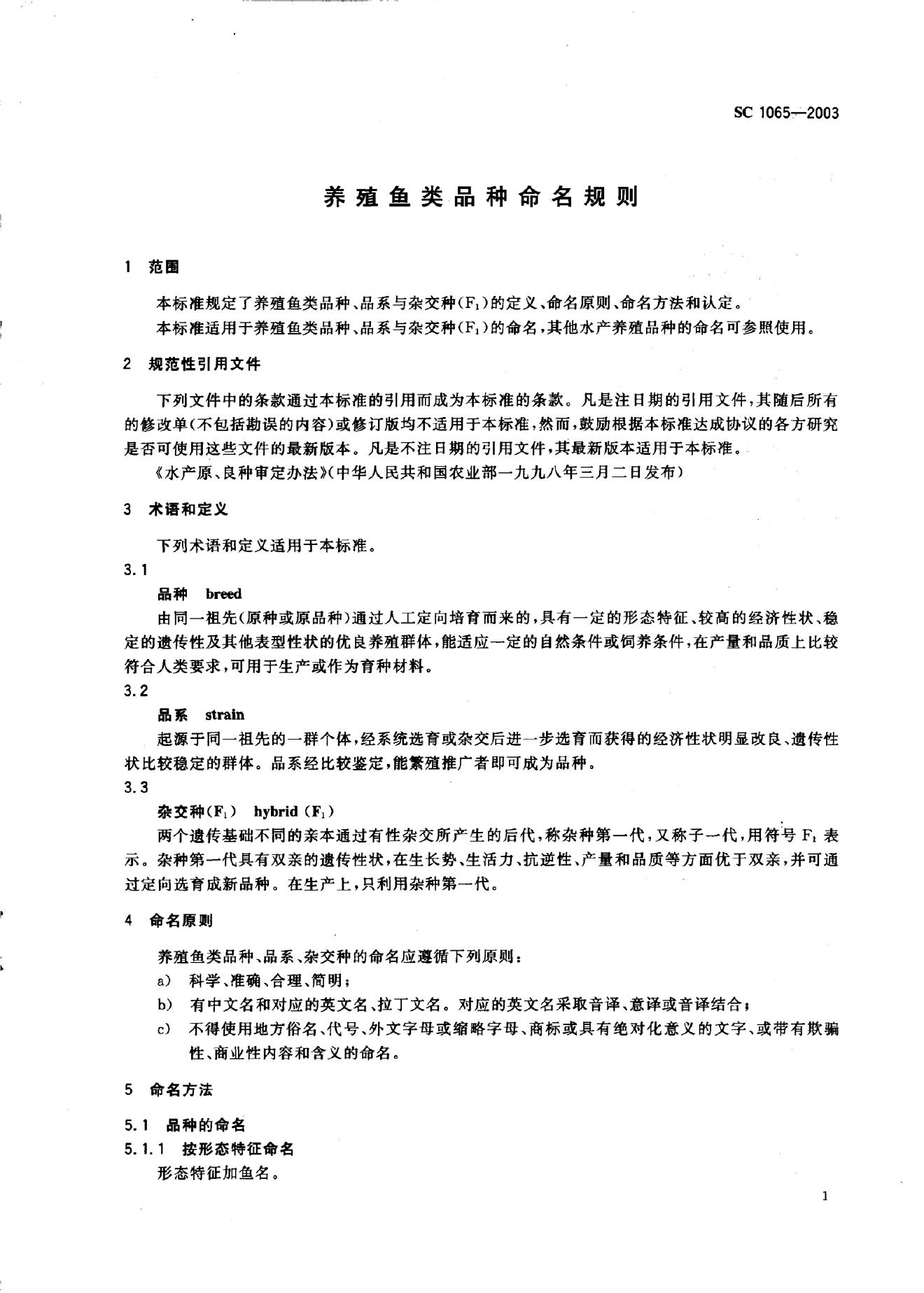 SC/T 1065-2003 养殖鱼类品种命名规则