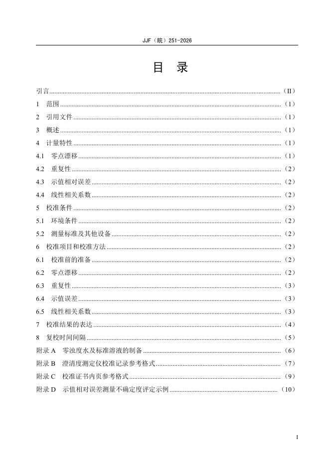 JJF(皖)251-2026 澄清度测定仪校准规范