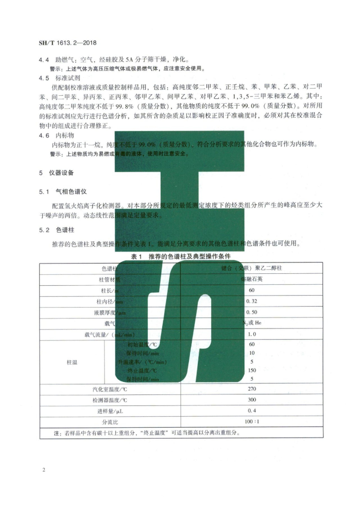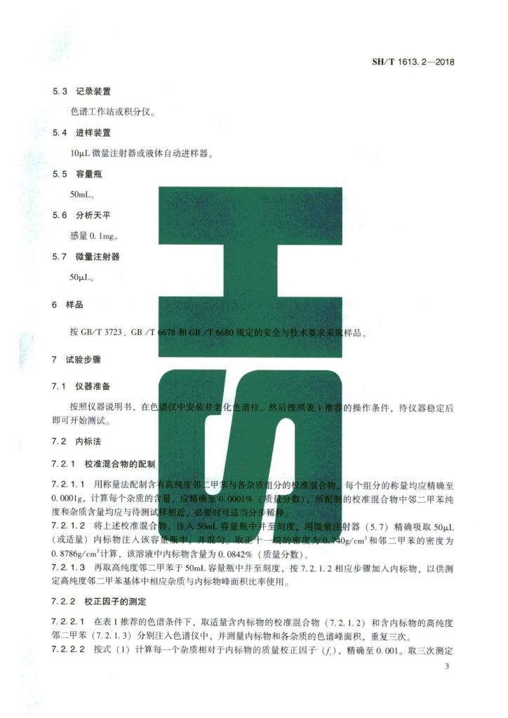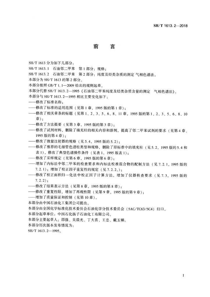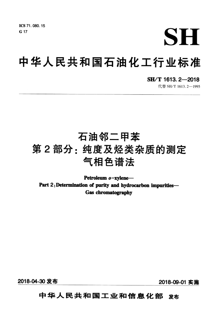 SH/T 1613.2-2018 石油邻二甲苯 第2部分:纯度及烃类杂质的测定 气相色谱法