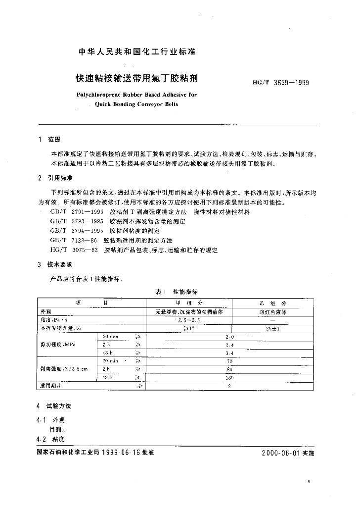 HG/T 3659-1999 快速粘接输送带用氯丁胶粘剂