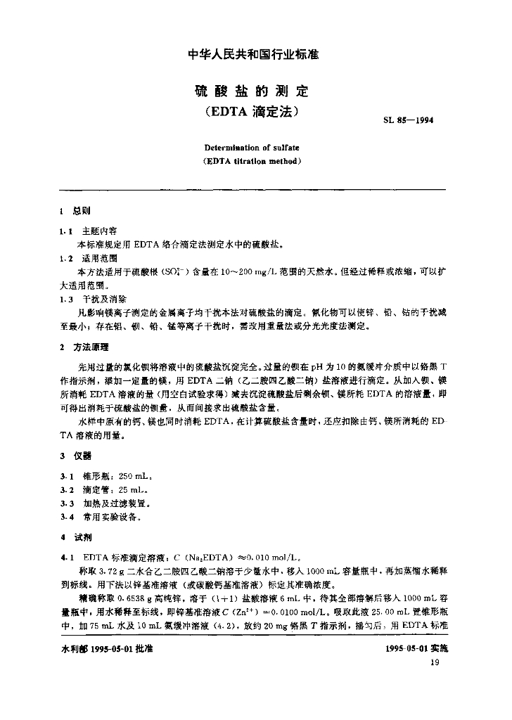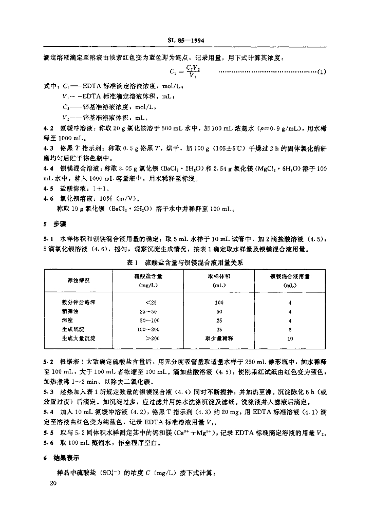 SL 85-1994 硫酸盐的测定 (EDTA滴定法)