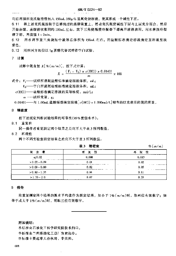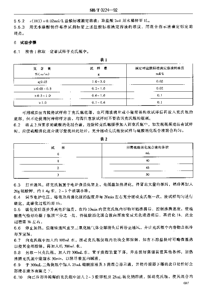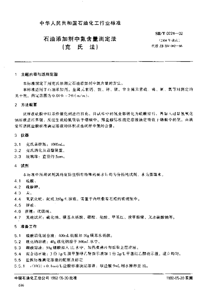 SH/T 0224-1992 石油添加剂中氮含量测定法(克氏法)