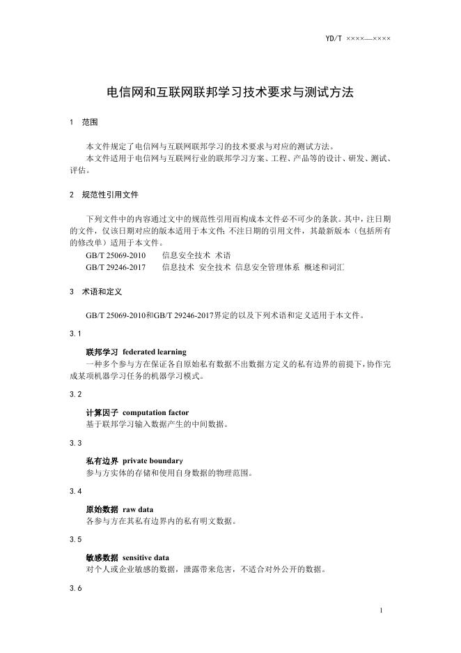 YD/T 4987-2024 电信网和互联网联邦学习技术要求与测试方法