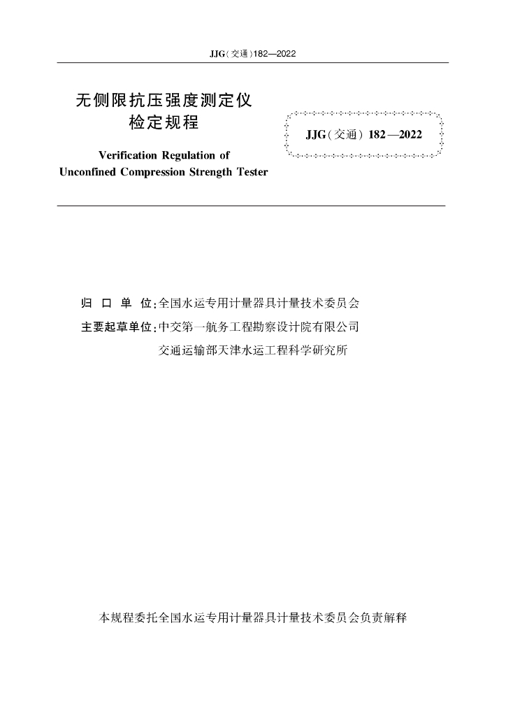 JJG(交通)182-2022 无侧限抗压强度测定仪