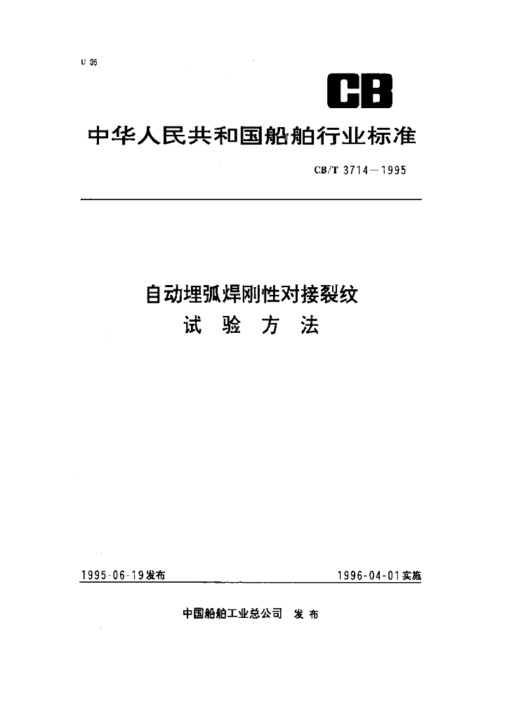 CB/T 3714-1995 自动埋弧焊刚性对接裂纹试验方法