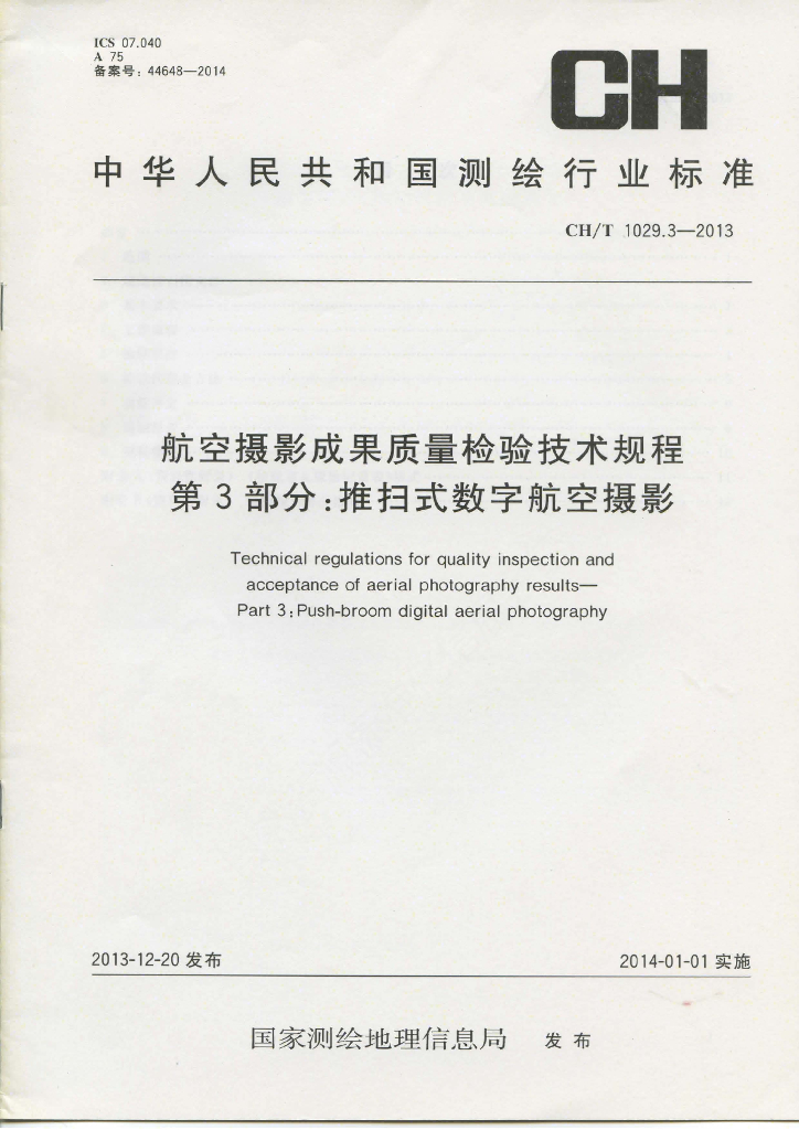 CH/T 1029.3-2013 航空摄影成果质量检验技术规程 第3部分:推扫式数字航空摄影