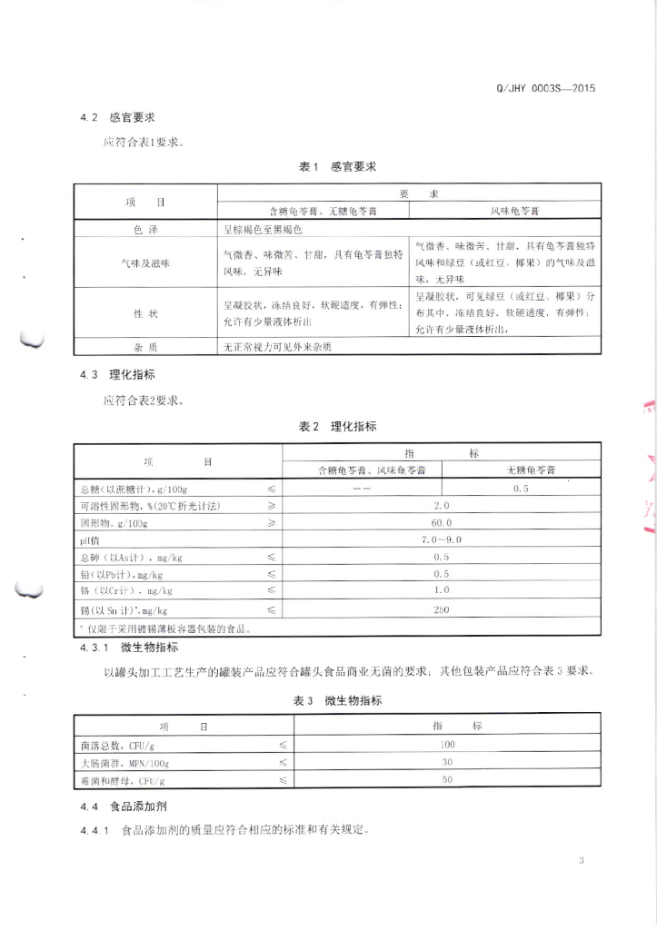 Q/JHY 0003S-2015 佛山市南海区金海燕滋补食品有限公司 龟苓膏