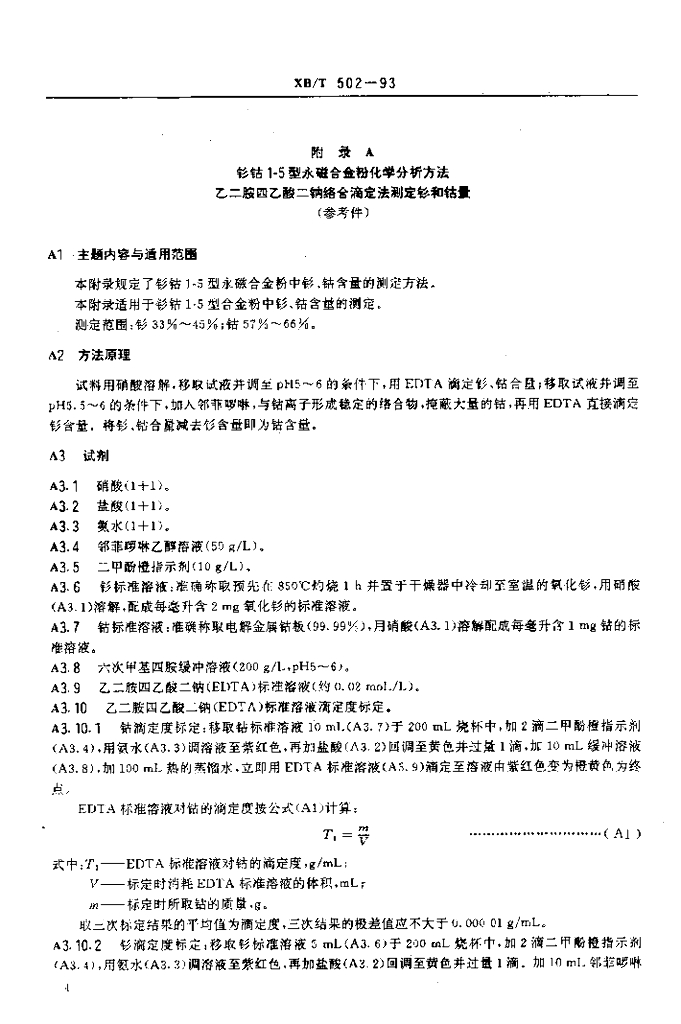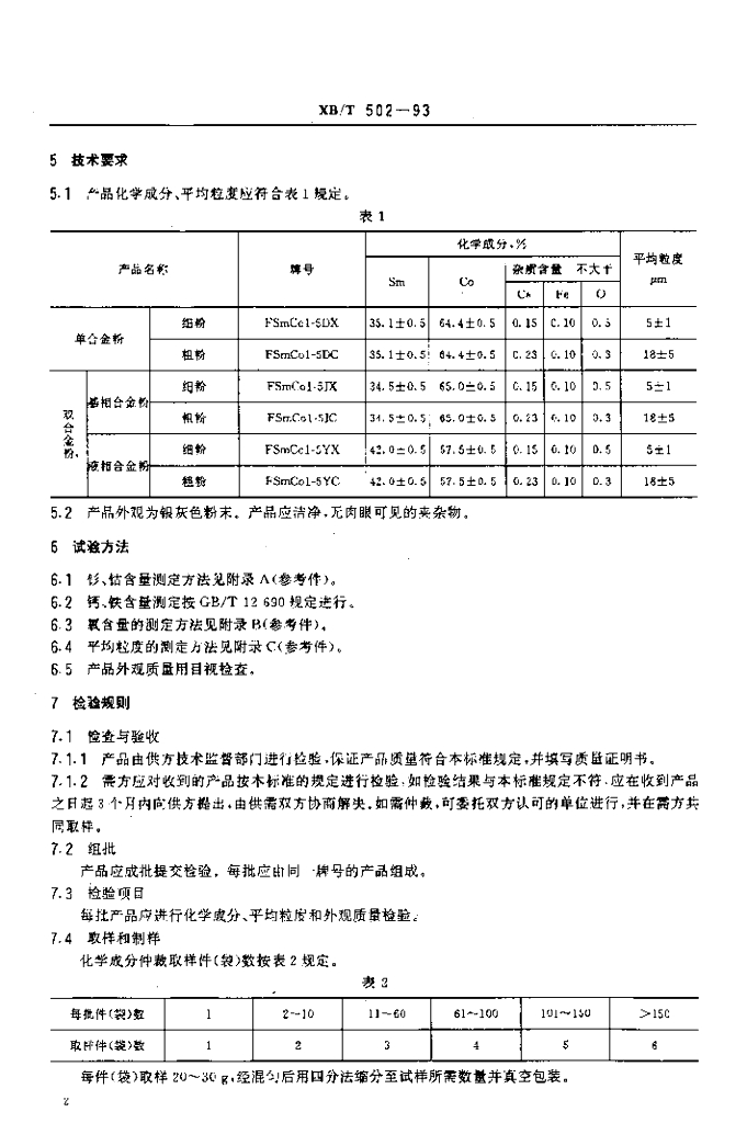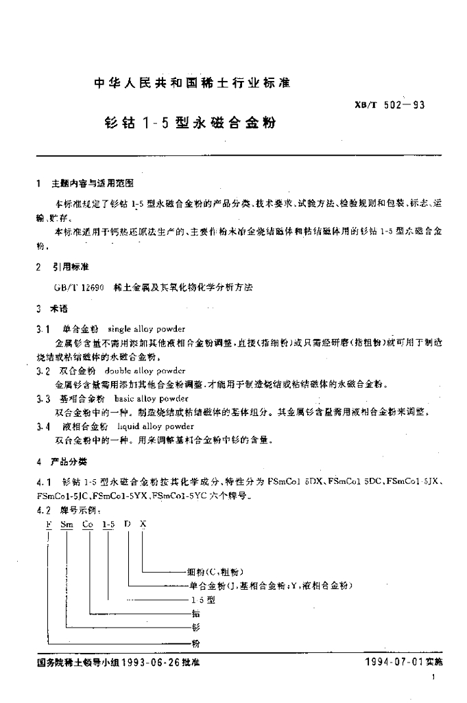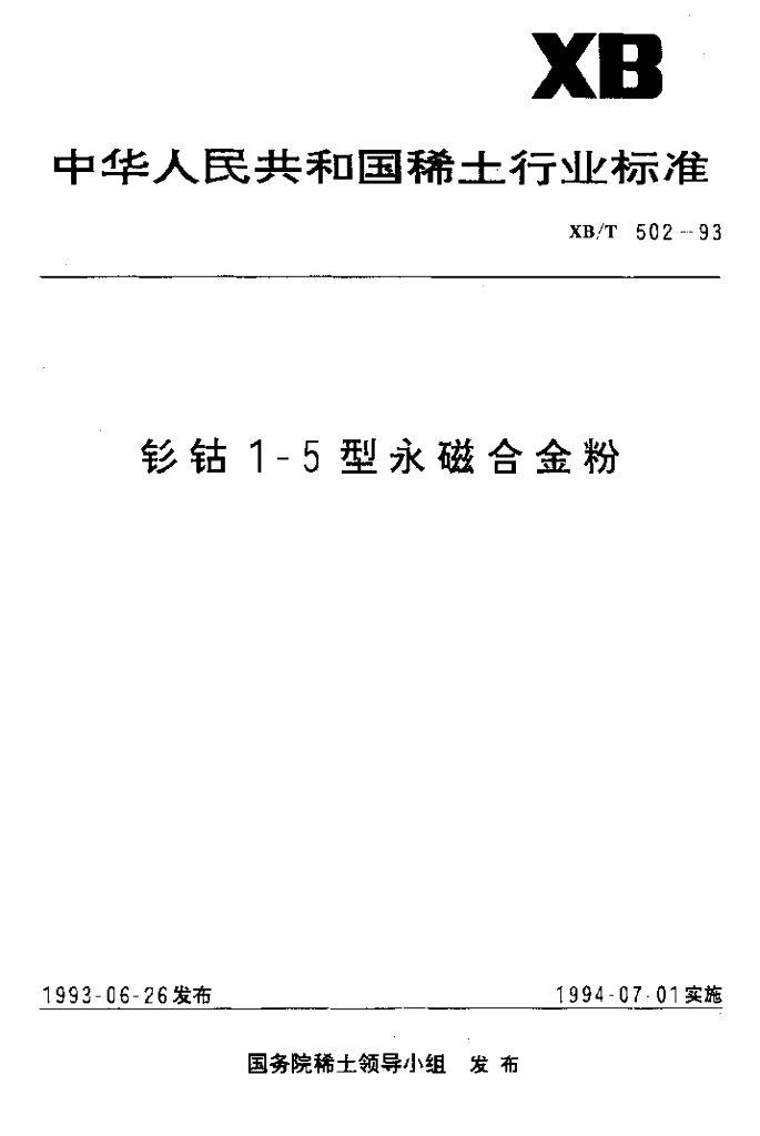 XB/T 502-1993 钐钴1-5型永磁合金粉