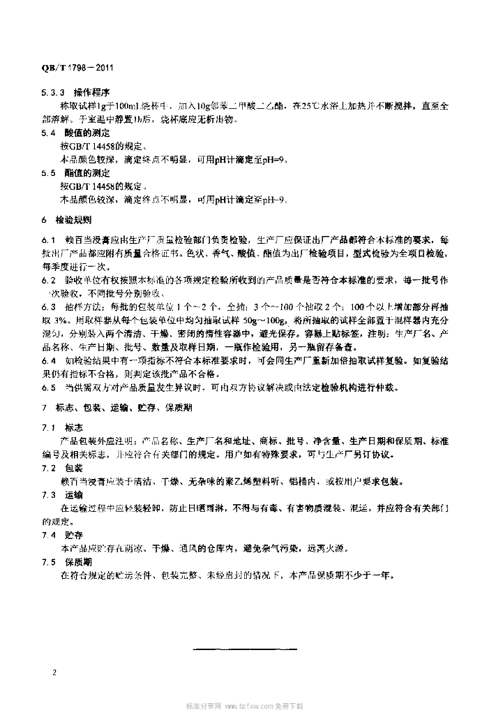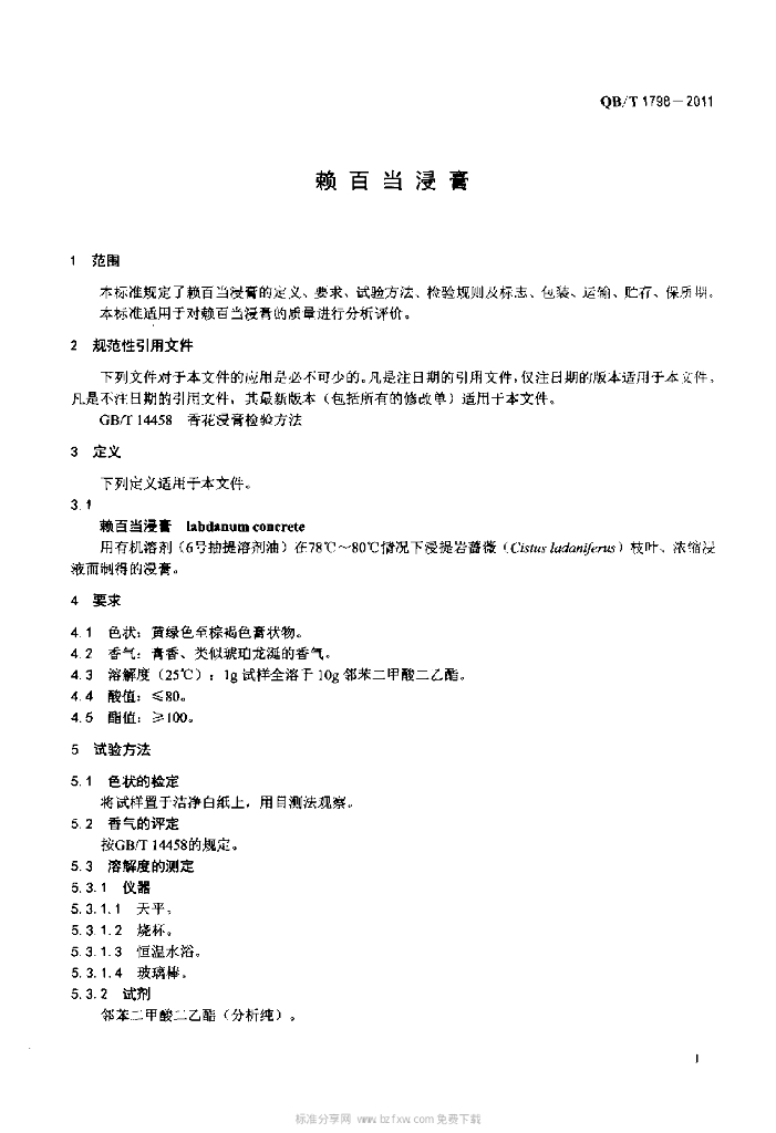 QB/T 1798-2011 赖百当浸膏
