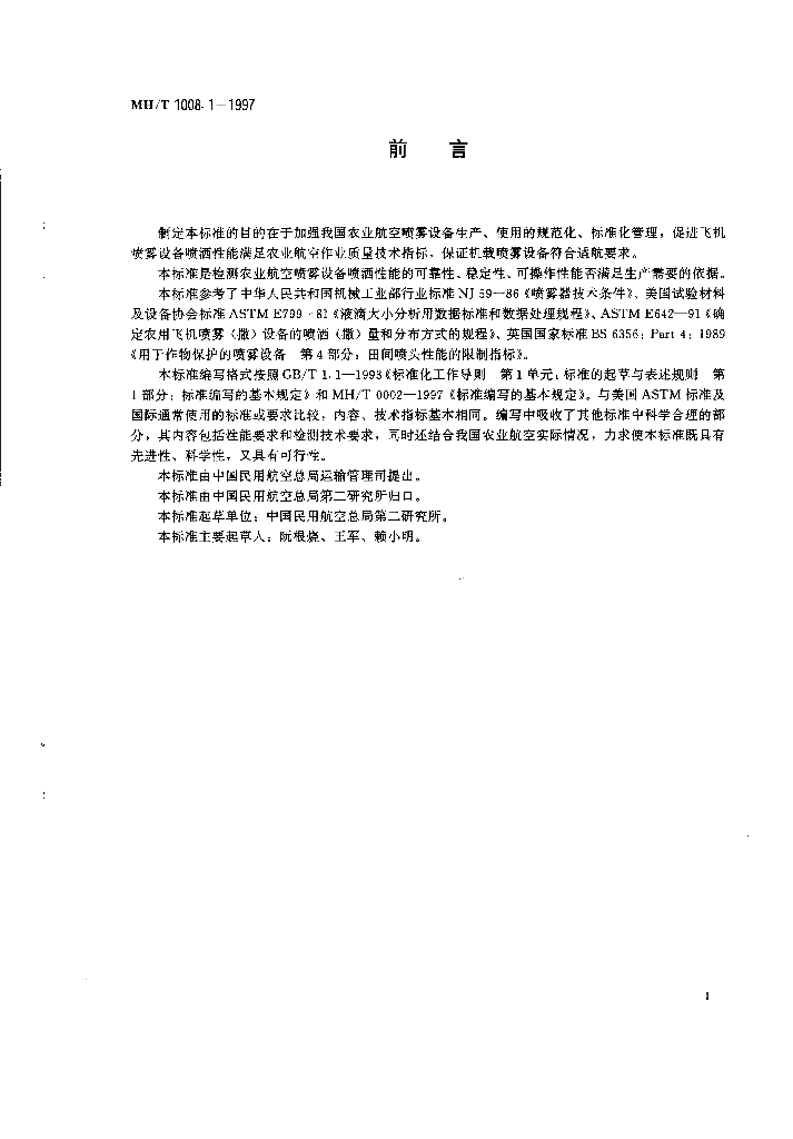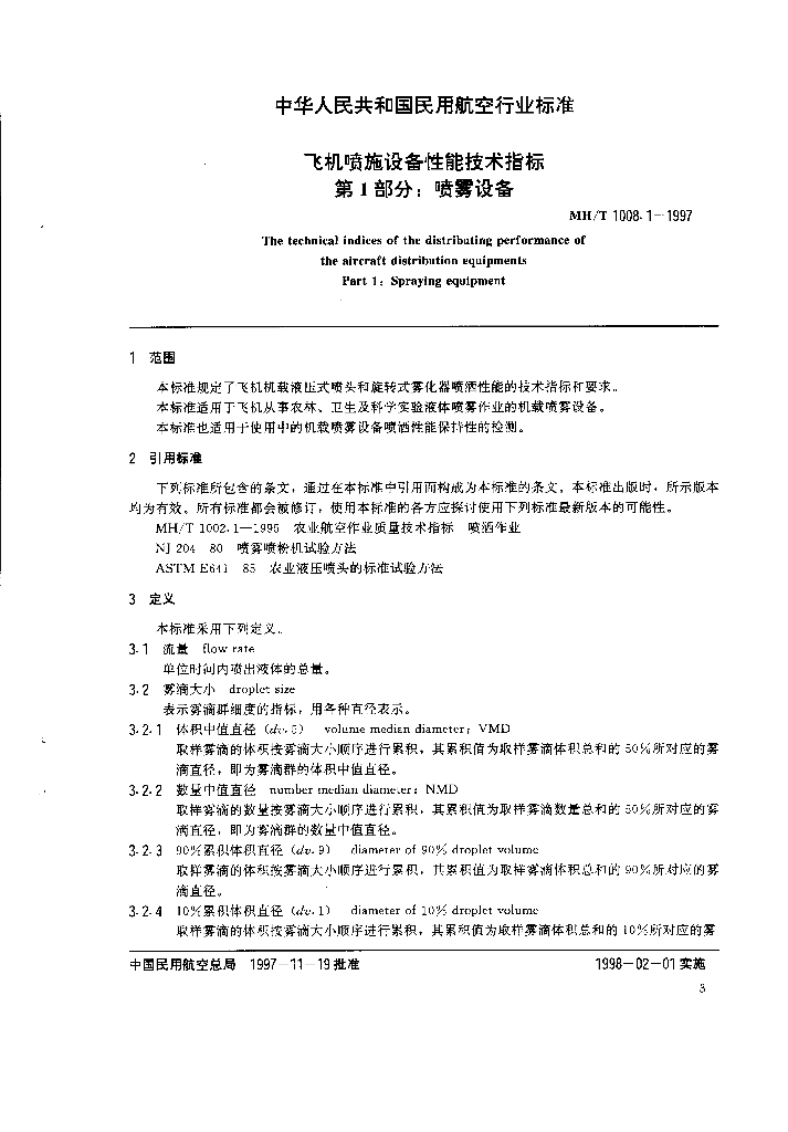 MH/T 1008.1-1997 飞机喷施设备性能技术指标 第1部分:喷雾设备