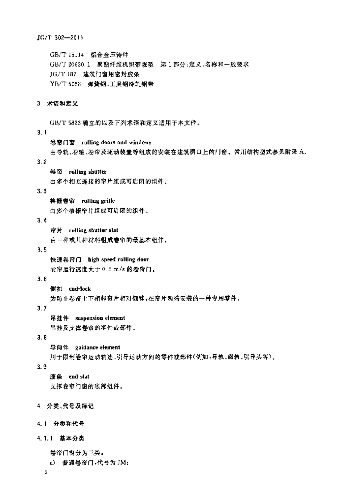 JG/T 302-2011 卷帘门窗