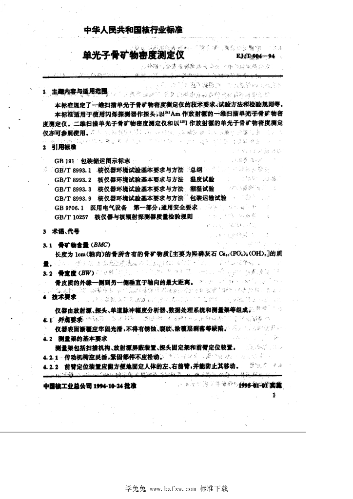 EJ/T 904-1994 单光子骨矿物密度测定仪