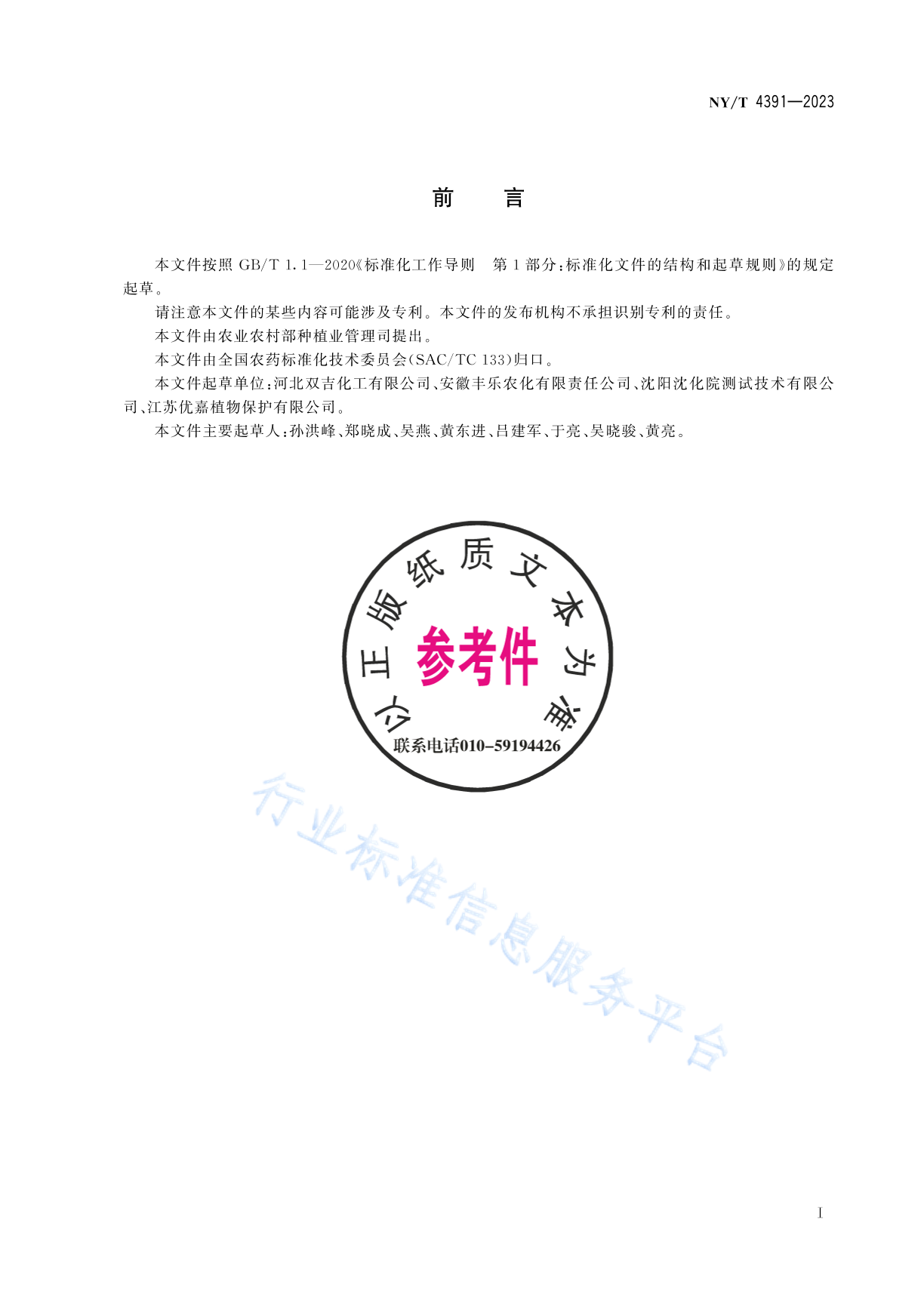 河北双吉化工有限公司、安徽丰乐农化有限责任公司、沈阳沈化院测试技术有限公司、江苏优嘉植物保护有限公司