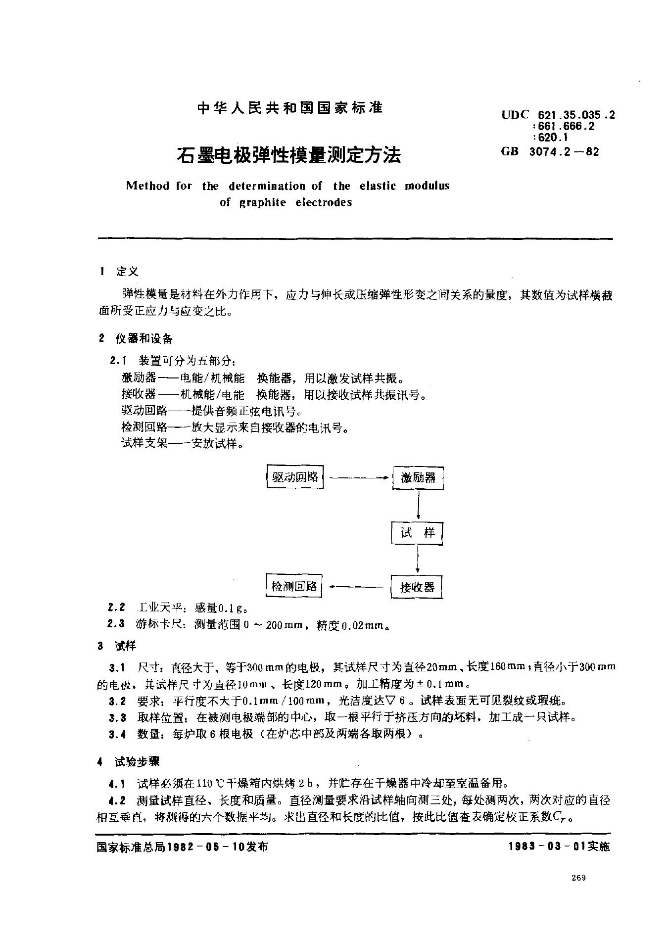 GB/T 3074.2-1982 石墨电极弹性模量测定方法