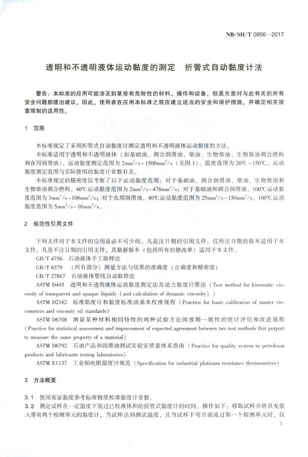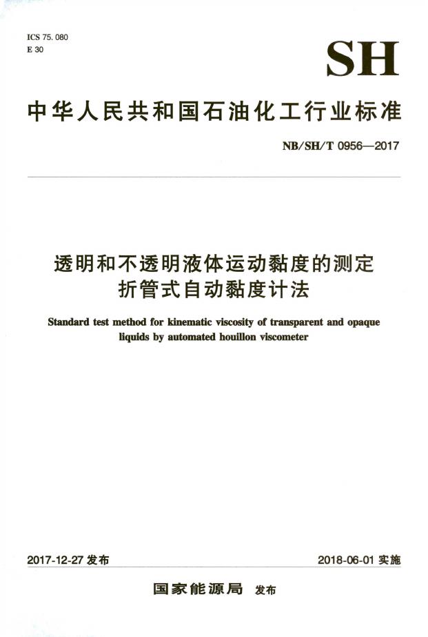SH/T 0956-2017 透明和不透明液体运动黏度的测定 折管式自动黏度计法