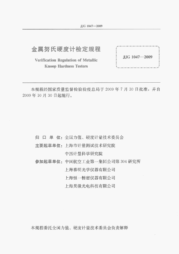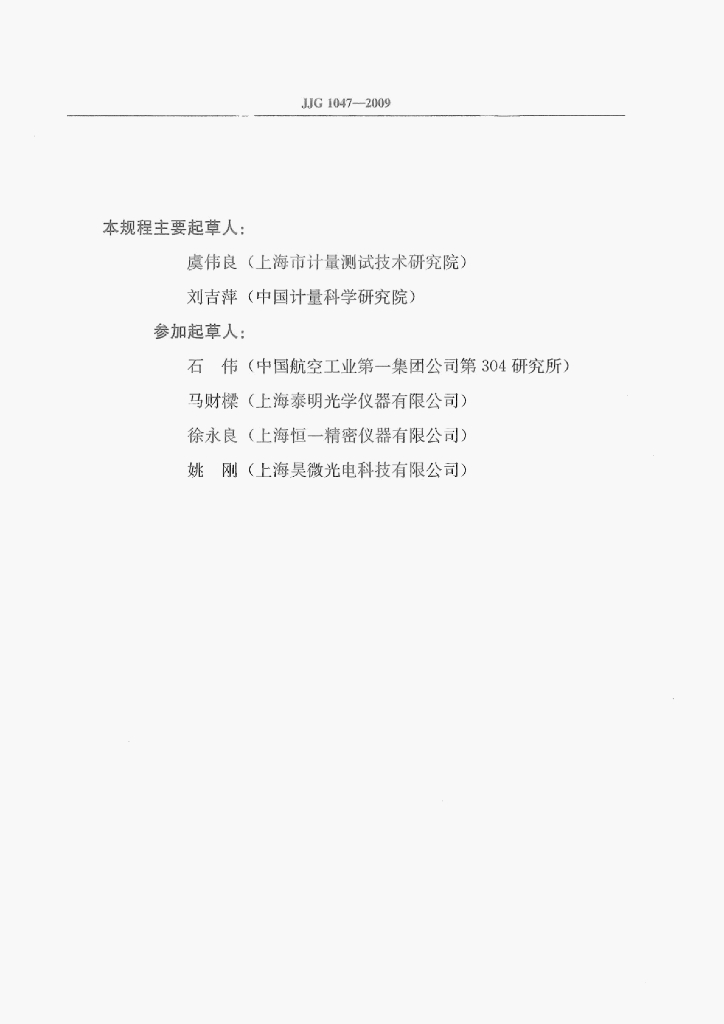 虞伟良(上海市计量测试技术研究院)、刘吉萍(中国计量科学研究院)、石伟(中国航空工业第一集团公司第304研究所)、马财棵(上海泰明光学仪器有限公司)、徐永良(上海恒一精密仪器有限公司)、姚刚(上海昊微光电科技有限公司)