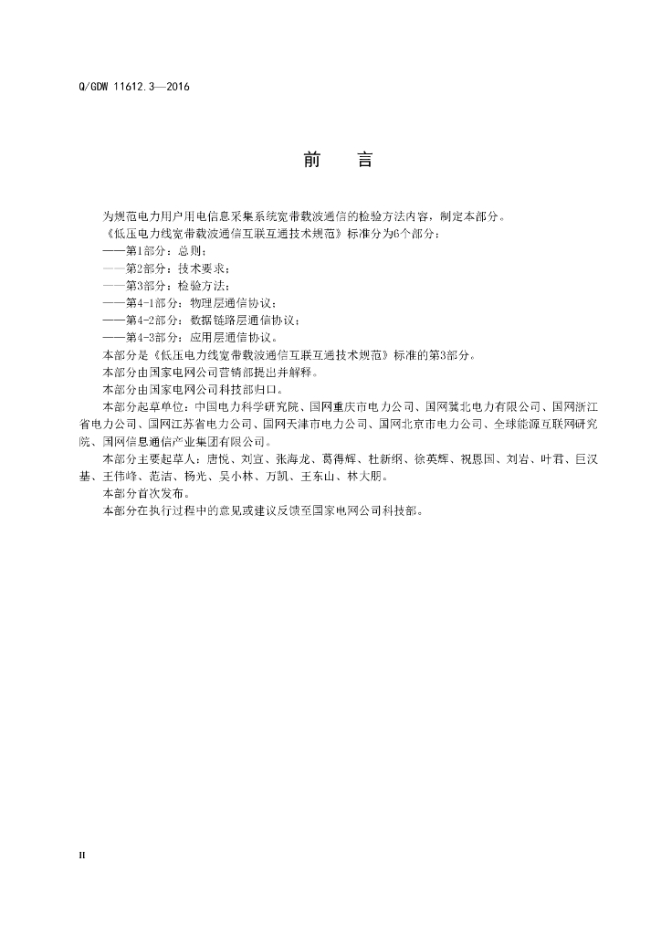 Q/GDW 11612.3-2016 低压电力线宽带载波通信互联互通技术规范第3部分:检验方法