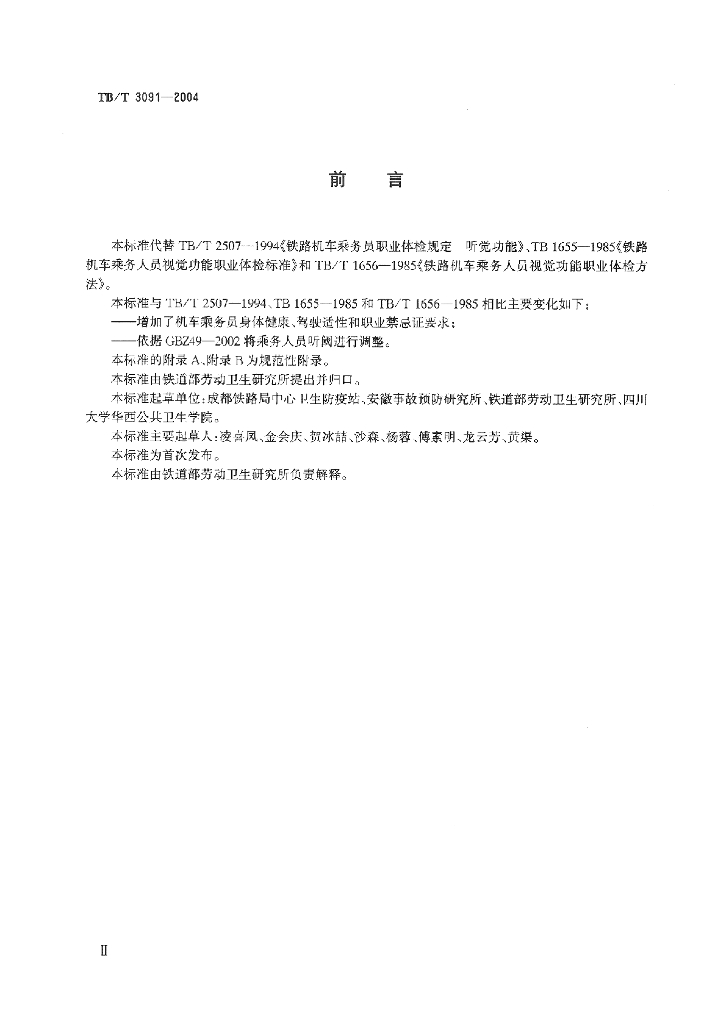 TB/T 3091-2004 铁路机车乘务员职业健康检查规范