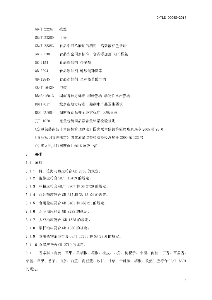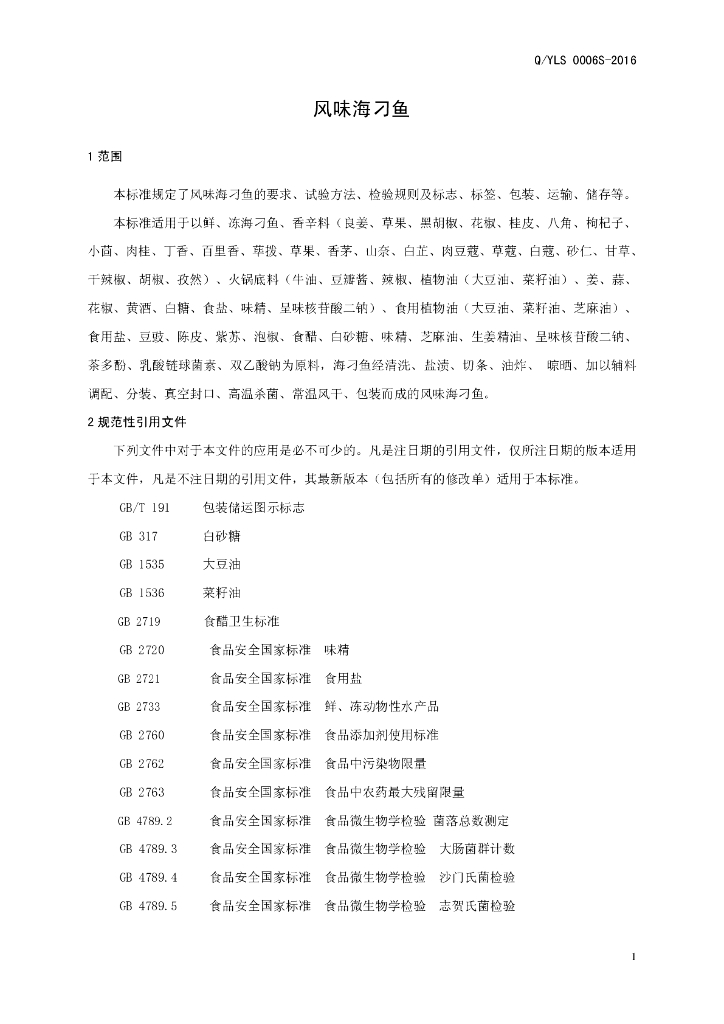 Q/YLS 0006S-2016 禹州市老渔夫湘味食品厂 风味海刁鱼