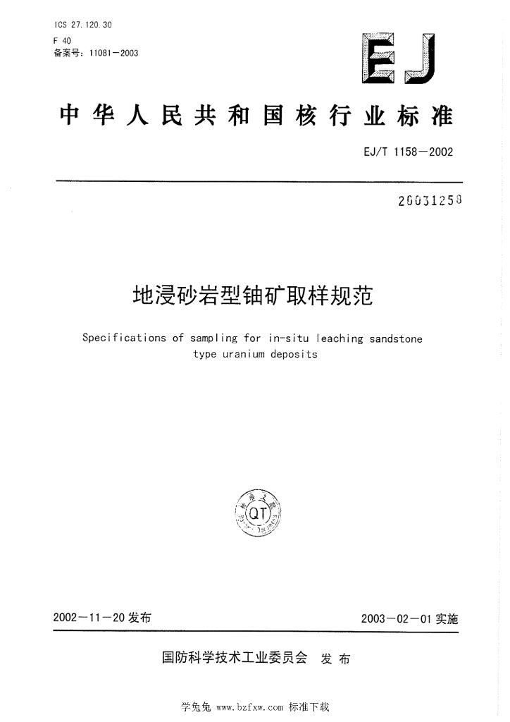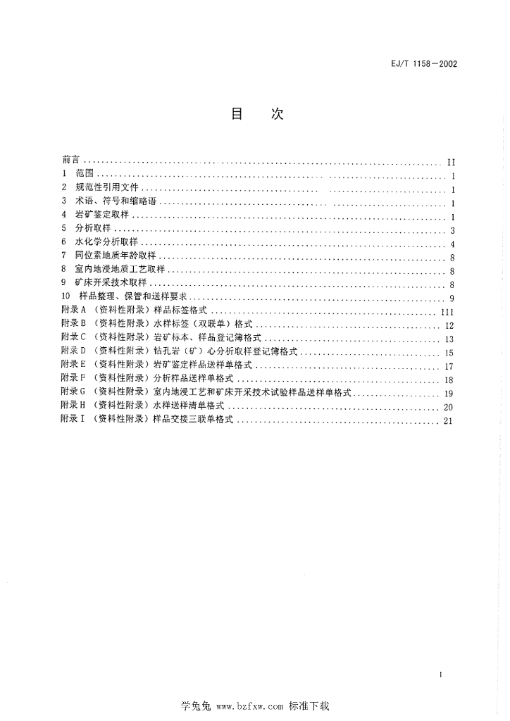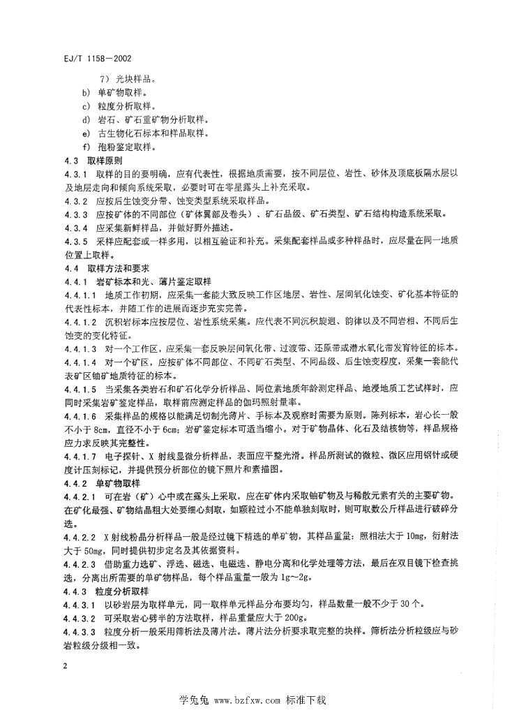 EJ/T 1158-2002 地浸砂岩型铀矿取样规范