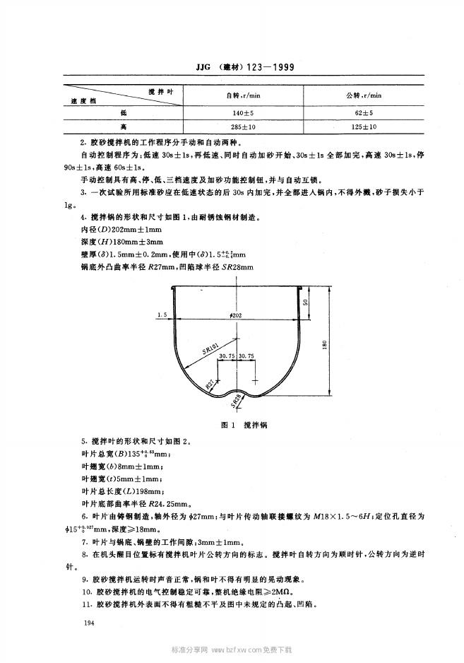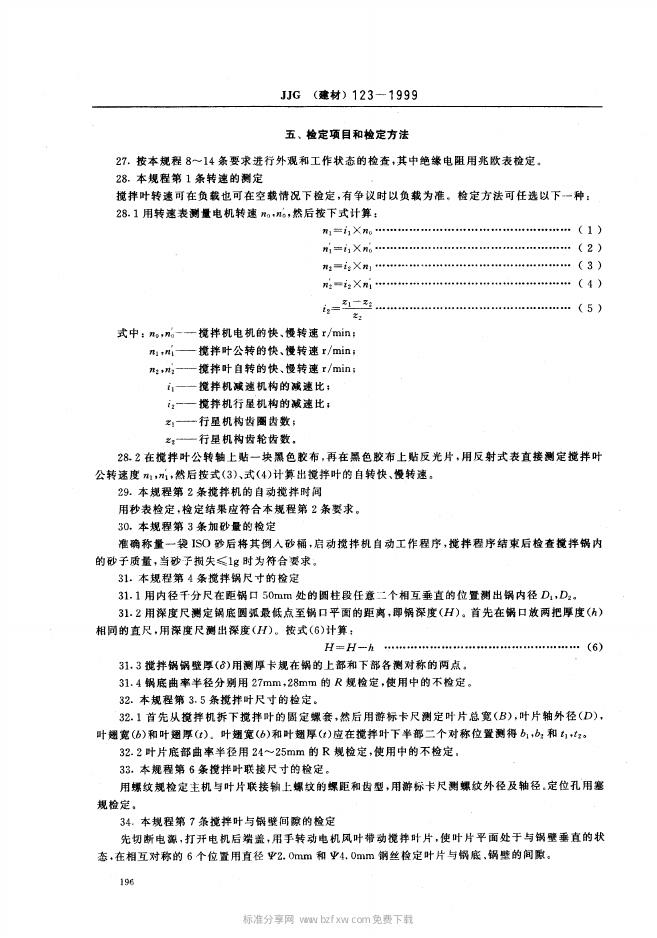 JJG(建材)123-1999 行星式胶砂搅拌机检定规程