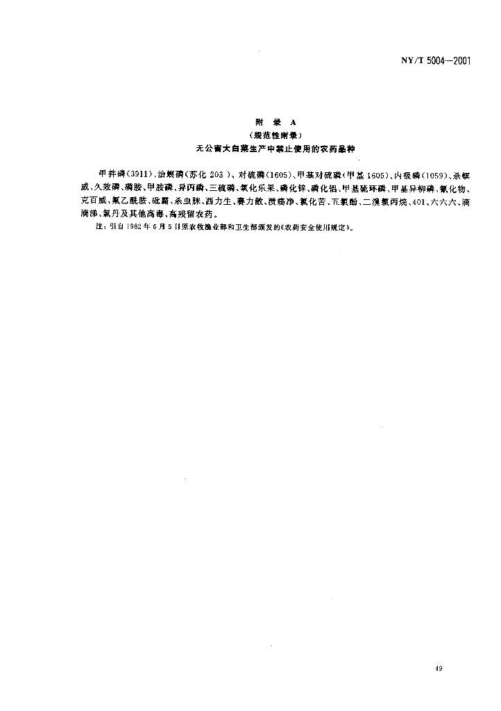 NY/T 5004-2001 无公害食品 大白菜生产技术规程