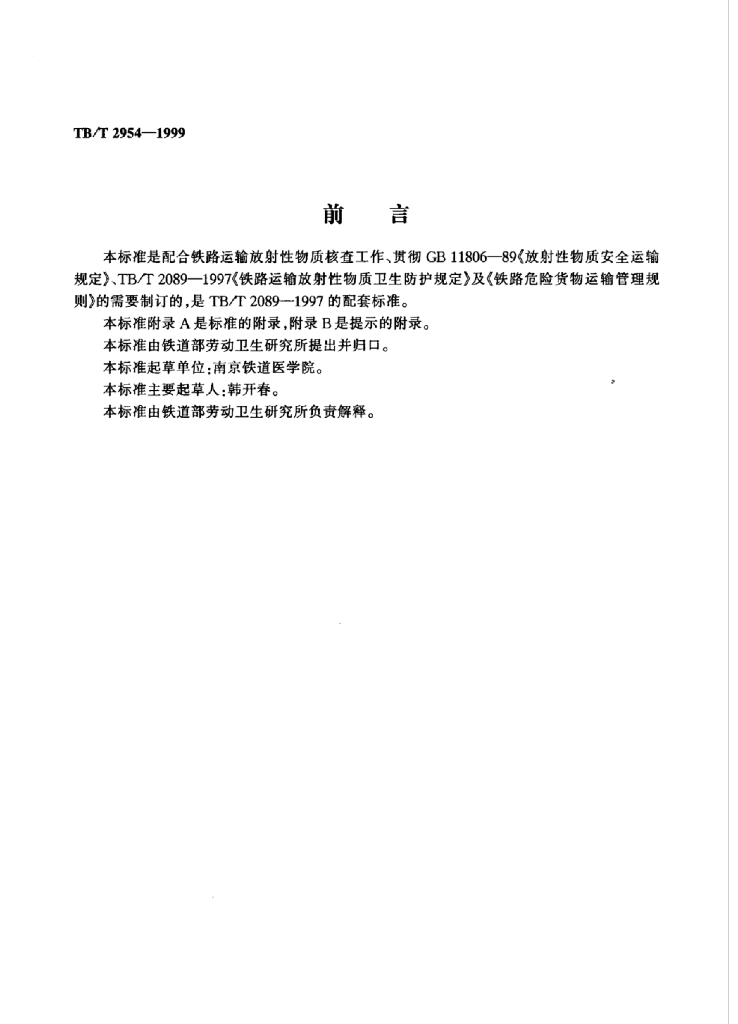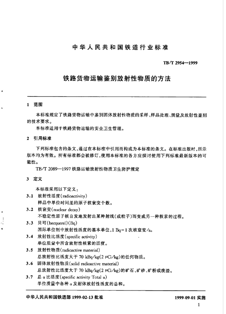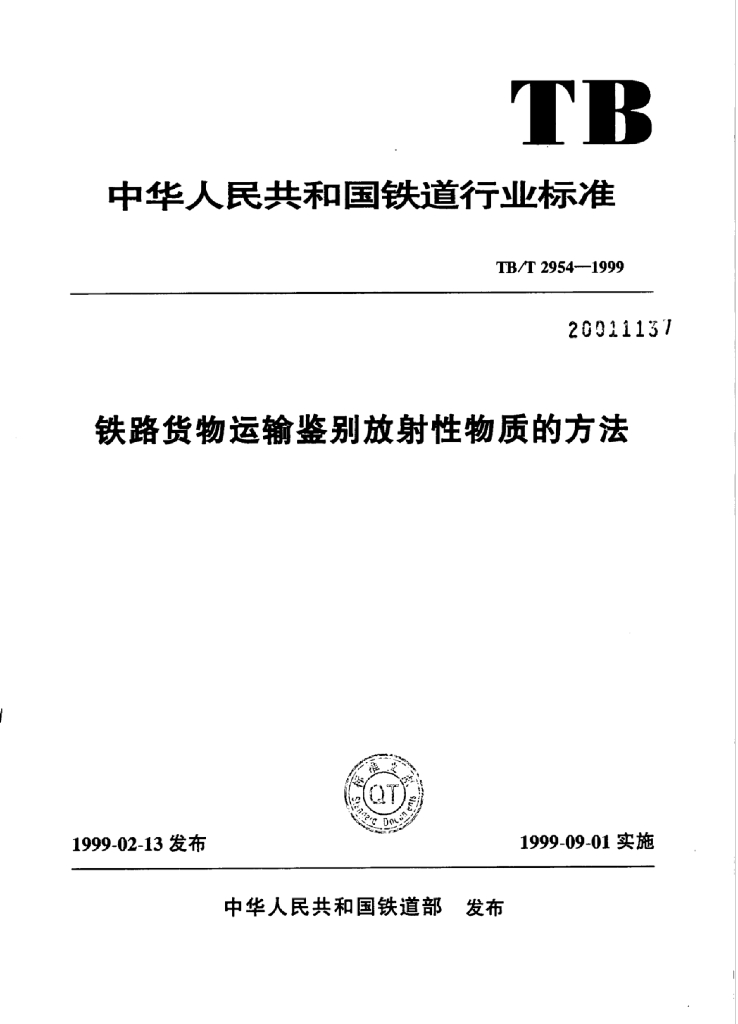 TB/T 2954-1999 铁路货物运输鉴别放射性物质的方法
