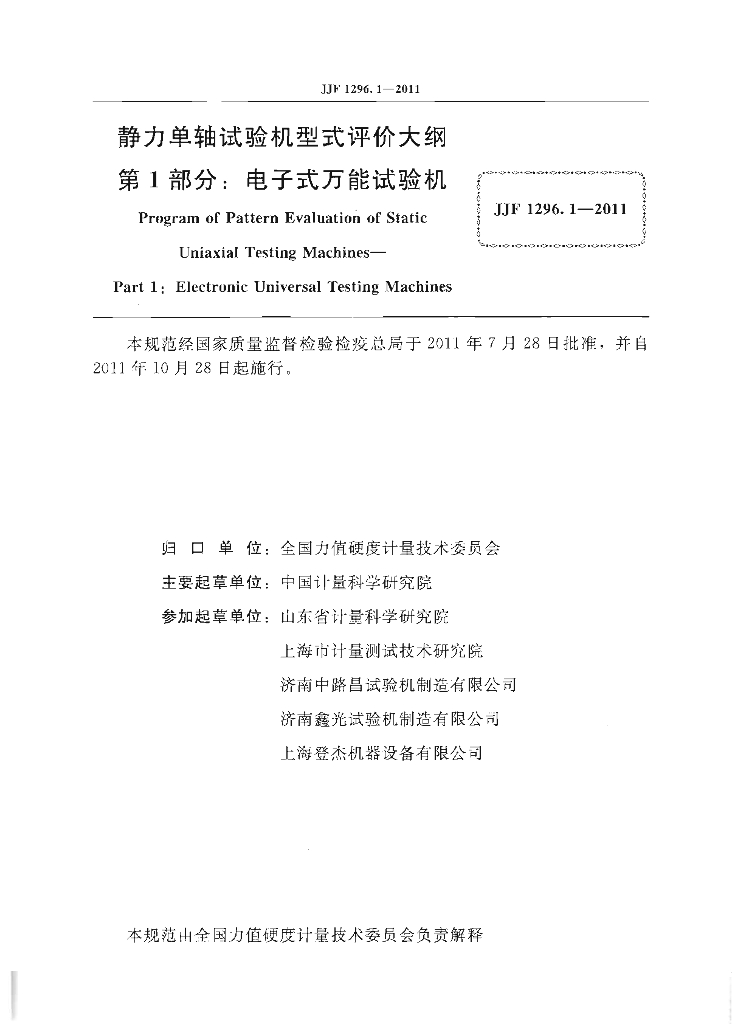 中国计量科学研究院、山东省计量科学研究院、上海市计量测试技术研究院、济南中路昌试验机制造有限公司、济南鑫光试验机制造有限公司、上海登杰机器设备有限公司